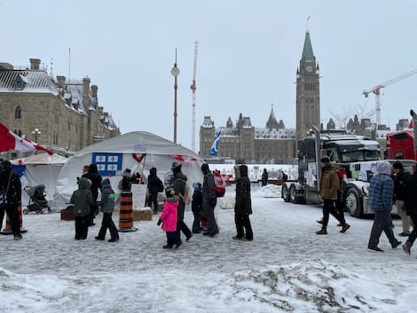 Une ambiance de carnaval d’Iver rangnait au center-ville parmi les camions immobilisis, alres que millies de persona people venues se joindre au movement de contestation des mesure sanitaires qui dure depuis mental 16 days.