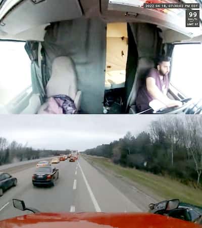 Cameras mounted in the cabin of his truck captured Mehkdeep Singh and the road ahead.